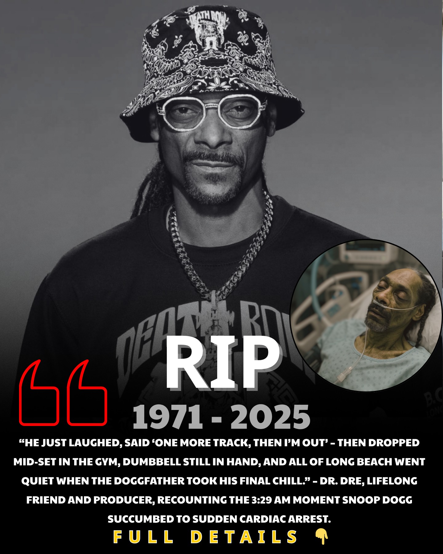 🚹 sad news: Snoop Dogg, 54, collapses and dies from sudden cardiac arrest – family mourns the loss of hip-hop’s eternal chill master after decades of defying the odds… see more